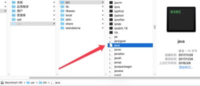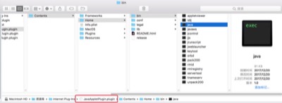 由于是按顺序查找的,所以只要在 /usr/bin 之前搜索到就不会使用默认的苹果指定的 JRE 了,经过仔细查看发现 /usr/local/bin 在 /usr/bin 之前搜索,所以我们可以在 /usr/local/bin 里建个 Library/Internet Plug-Ins/JavaAppletPlugin.plugin/Contents/Home/bin/java 的替身!