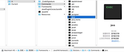 这说明了 java 命令搜索路径是 /usr/bin/java 并且这只是个替身,原身是 /System/Library/Frameworks/JavaVM.framework/Versions/Current/Commands/java !!!