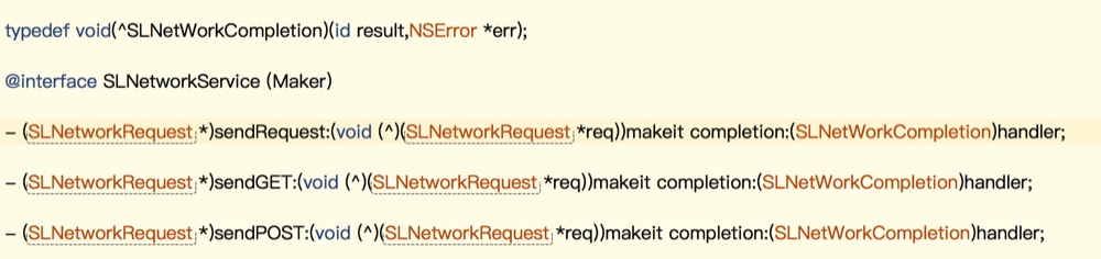 - (SLNetworkRequest *) Get:(NSString *)url completion:(SLNKHandler)chandler;